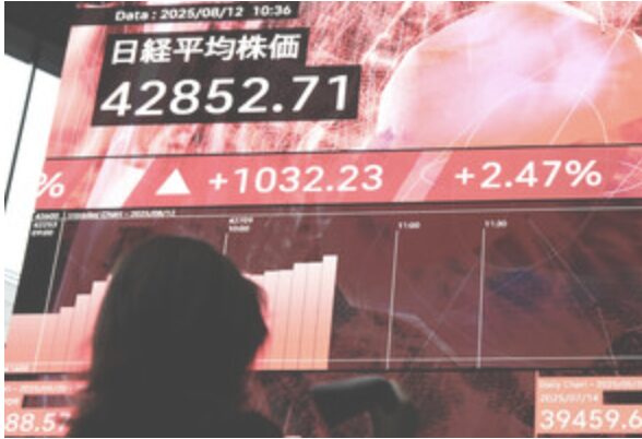 12日の東京株式市場で日経平均株価が一時、前週末の終値より500円超高い4万2300円台をつけた。昨年7月11日の終値でつけた史上最高値(4万2224円02銭)を約1年1カ月ぶりに更新した。国内企業の決算発表で好業績が相次いだことに加え、米国の関税政策をめぐる不透明感が後退。投資家に安心感が広がり、買い注文が優勢となっている。12日の東京株式市場で日経平均株価が一時、前週末の終値より500円超高い4万2300円台をつけた。昨年7月11日の終値でつけた史上最高値(4万2224円02銭)を約1年1カ月ぶりに更新した。国内企業の決算発表で好業績が相次いだことに加え、米国の関税政策をめぐる不透明感が後退。投資家に安心感が広がり、買い注文が優勢となっている。