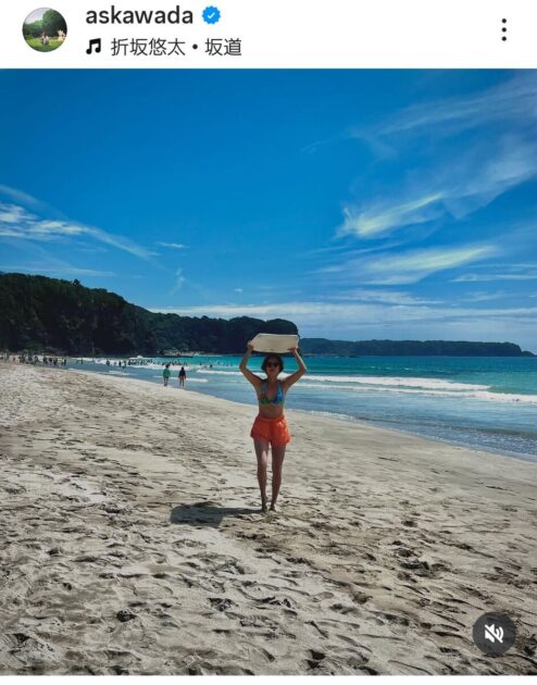 料理家で食育インストラクターの和田明日香さん(38)が、海を満喫する様子をアップした。