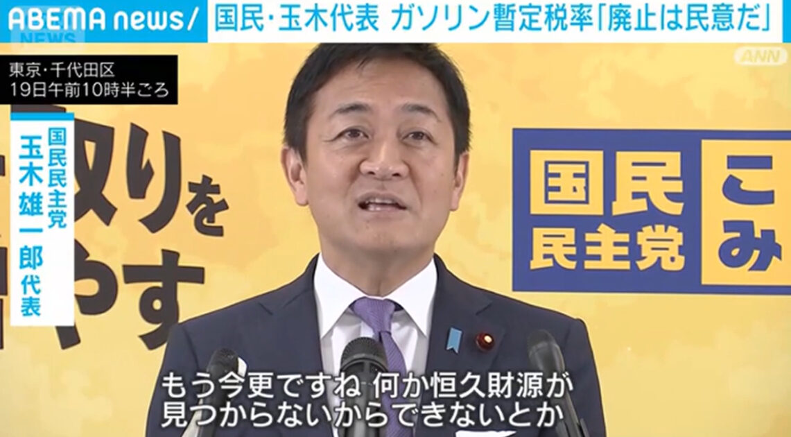 https://www.msn.com/ja-jp/news/national/%E5%9B%BD%E6%B0%91-%E7%8E%89%E6%9C%A8%E4%BB%A3%E8%A1%A8-%E3%82%AC%E3%82%BD%E3%83%AA%E3%83%B3%E6%9A%AB%E5%AE%9A%E7%A8%8E%E7%8E%87%E5%BB%83%E6%AD%A2%E3%81%AB-%E8%B2%A1%E6%BA%90%E3%82%88%E3%82%8A%E6%B0%91%E6%84%8F/ar-AA1KLNBt?cvid=6D02AEC27ECD45429E0A4CBC6C5CA28B