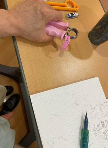 左手は痺れを治すためにハンドグリップをカチカチやっている。