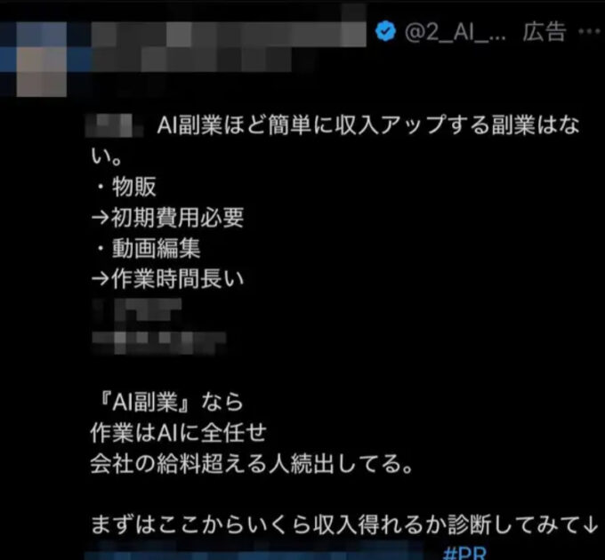 「AI(人工知能)で楽に稼げる」とうたう広告がSNS上に乱立している。