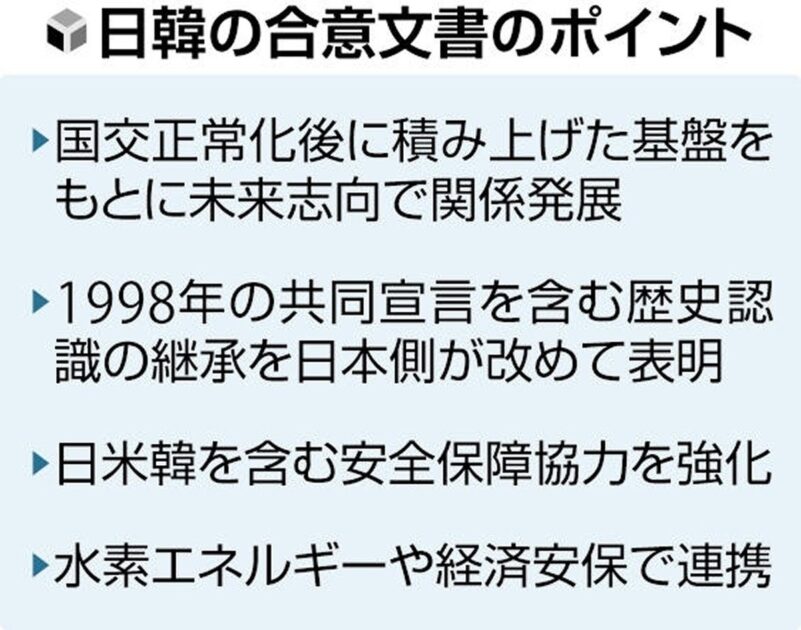 最終調整中の文書では、「両首脳は国交正常化から60年間で積み上げられた基盤に基づき、2国間関係を安定的で未来志向に発展させていく」と明記する。65年の同協定が両国関係の出発点だと確認するものだ。