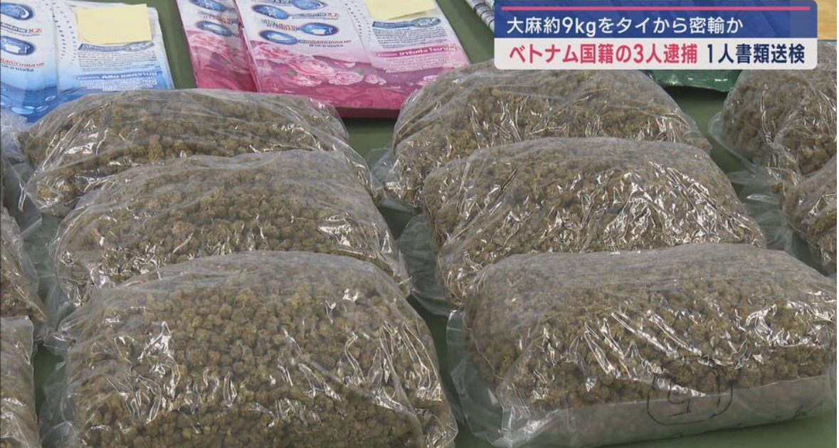 タイからおよそ9キロの◯麻を密輸したとして、ベトナム国籍の男女3人が逮捕され、1人が書類送検されました。