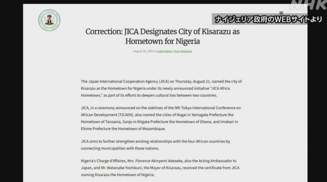 【ホームタウン】ナイジェリア政府高官 HP誤掲載「日本側の発表を誤って解釈」「訂正を出したことで、この件を解決したい」