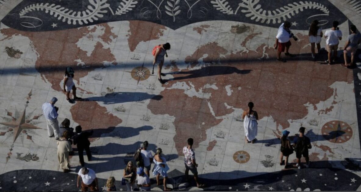 ポルトガルの首都リスボンで、巨大な地図を見る人々=2017年9月6日、ロイター