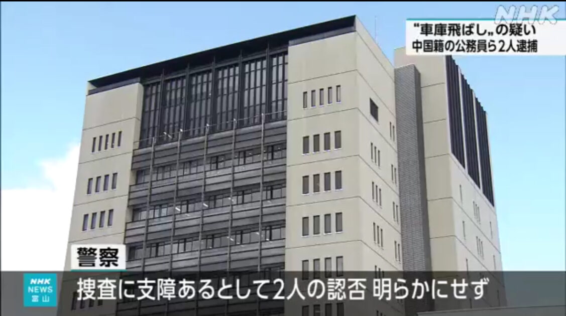 【NHK】 富山 “車庫飛ばし”の疑いで中国籍の公務員ら2人を逮捕