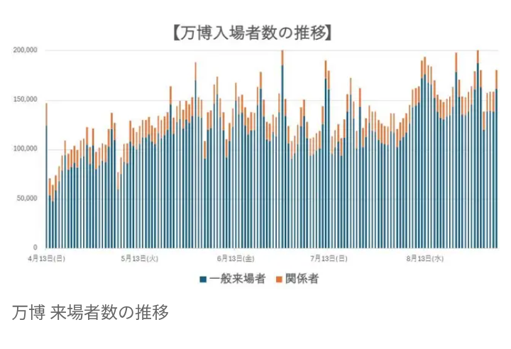 これまで1日あたりの来場者数が最も多かったのは、8月最後の土曜日となった8月30日(土)で、一般来場者数が18万7449人、関係者を含めた総来場者数は20万5473人です。
