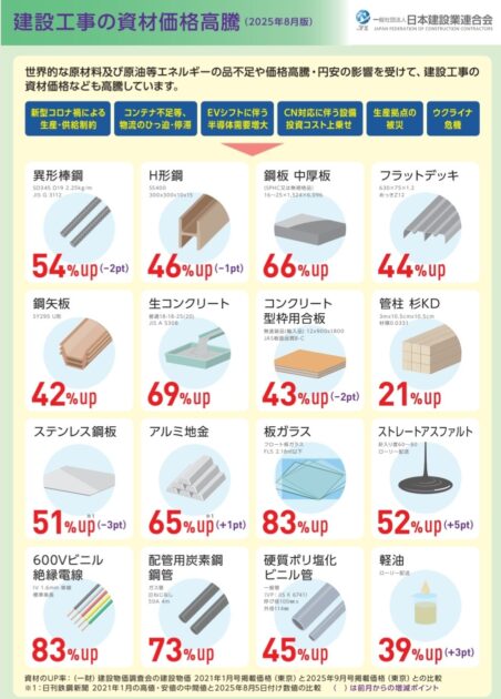 https://www.nikkenren.com/sougou/notice/index.html引用元: ・建材価格が大暴騰で建設業に危機…板ガラス83%上昇、H型鉄骨46%、生コン69% [237216734]