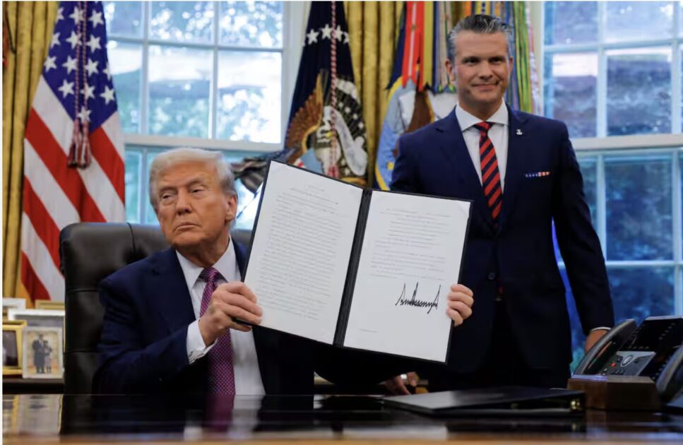 トランプ米大統領は5日、国防総省の呼称として「戦争省」を使うことを認める大統領令にホワイトハウスで署名した。正式な名称変更には議会の承認が必要とみられる。米メディアによると、大統領令はヘグセス国防長官に立法、行政手続きなど必要な措置を勧告するよう指示した。