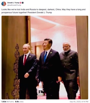 引用元: ・トランプ、発狂。「ギャー!この写真を見て!インドとロシアが中国に奪われたの…😭」 [271912485]