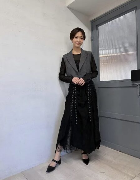 渡邊さんはインスタグラムにハトとカラスの絵文字を記すと、「#衣装」とハッシュタグをつけた。黒のトップスにレーススカート、グレーのベストを着た大人の雰囲気を感じるブラックコーデを披露した。