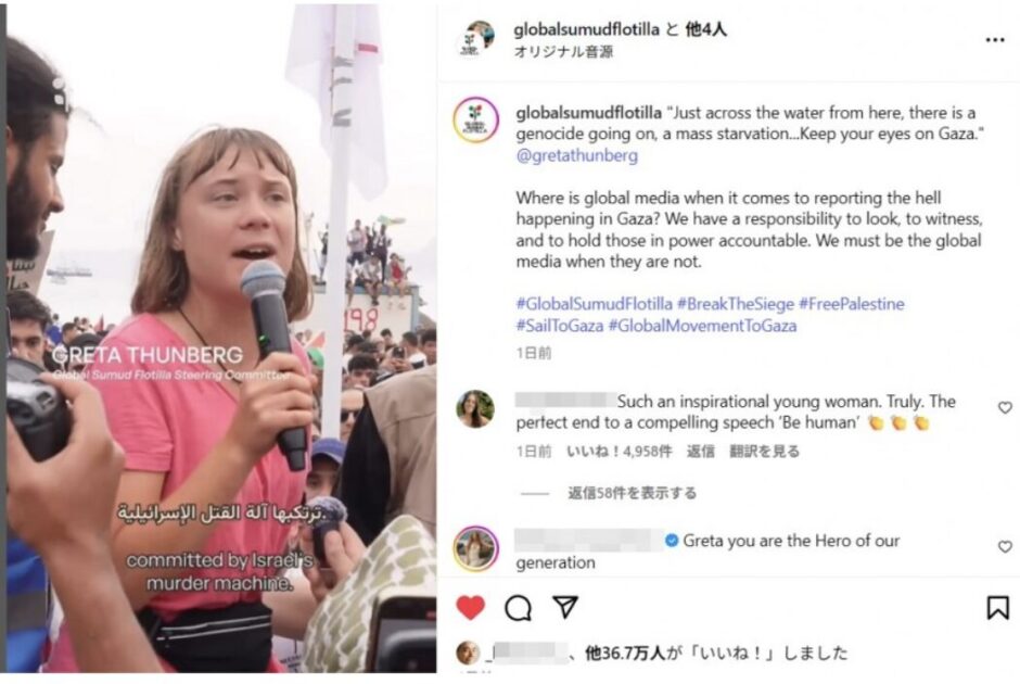 パレスチナ自治区ガザでは、イスラエルが同地区への人道支援物資の搬入を極端に制限しているため、深刻な飢餓が約210万人のガザ住民の命と健康を脅かしています。こうした中、著名な環境活動家のグレタ・トゥーベリさんは44カ国の民間船団と共に人道支援物資を届けるためガザへと向かっています。ところが、日本のSNSではそのグレタさんの外見を揶揄する投稿が注目を集めているのです。