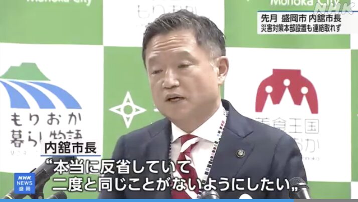 先月(8月)20日の夜、盛岡市に土砂災害警戒情報が発表され、市が災害対策本部を設置した際、内舘市長が翌朝まで登庁せず、連絡も取れなくなっていたことがわかりました。