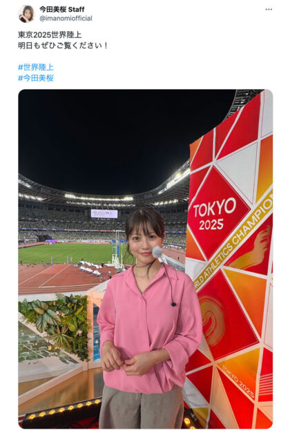 また、今大会では中学時代に陸上部に所属し、走り幅跳びを専門にしていたという今田さんもアンバサダーに就任。現役の朝ドラヒロインで、話題性も抜群の今田さんを“番組の顔”に起用するというのは、それだけTBSが世界陸上に力を入れているということでしょう」(テレビ関係者)