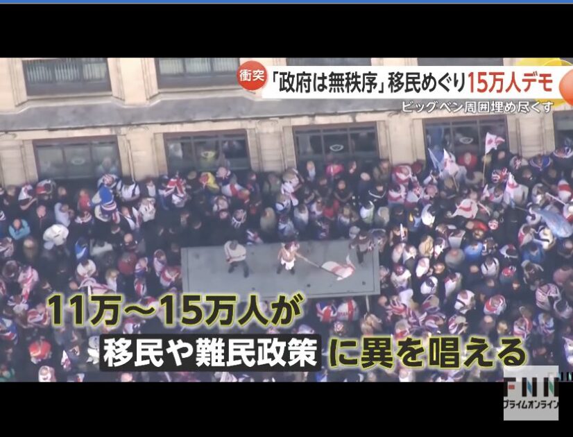 このデモは極右活動家トミー・ロビンソン氏が呼び掛けたもので、11万人から15万人が移民や難民政策に異を唱えました。