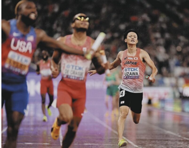 男子400メートルリレー決勝で、日本は予選と同じ小池祐貴―柳田大輝―桐生祥秀―鵜沢飛羽の走順で臨み、38秒35で6位だった。2017年ロンドン大会の銅メダル、2019年ドーハ大会の銅メダルに続く、6年ぶり3度目のメダル獲得には届かなかった。