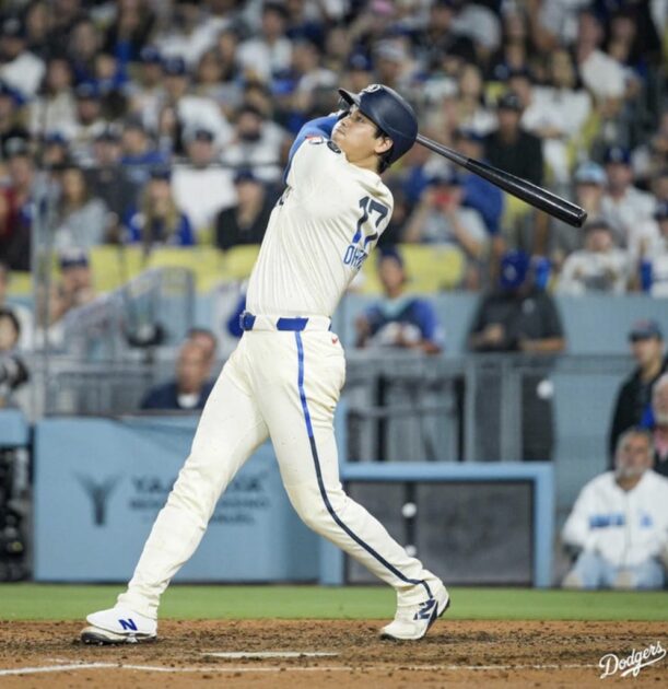 ドジャースの大谷翔平投手が「1番・指名打者」で出場し、1点リードの六回回の打席で4番手右腕ペゲーロから逆方向の左中間席へ2試合連続本塁打となる53号ソロを放った。この日を含めシーズン8試合を残し、本塁王争いは、一時は4本差をつけられていたカイル・シュワバー外野手(フィリーズ)に追いつき、トップタイに浮上した。