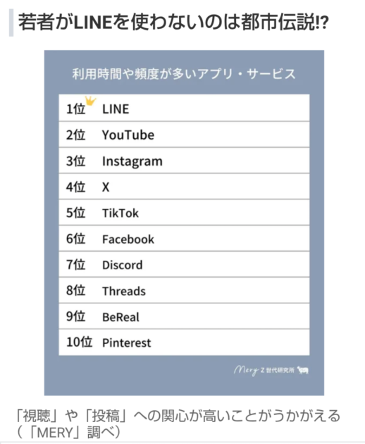 引用元: ・「LINE離れ」は都市伝説!? Z世代が最も使っていたアプリはやっぱりLINEだった [煮卵★]