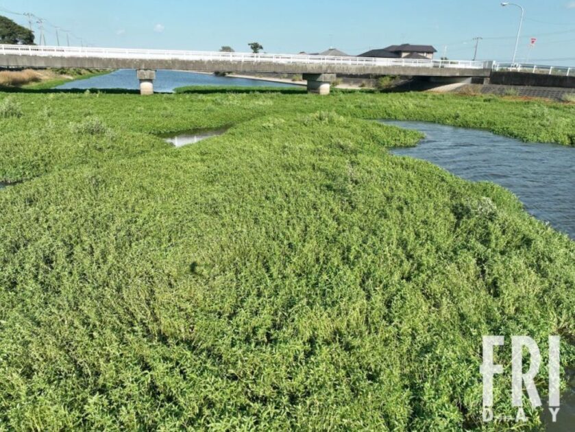 世界中で大きな問題に【現在】新利根川の水面を覆い尽くすナガエツルノゲイトウ。収穫をひかえる水田でも繁殖し農作物が大打撃を受ける可能性も