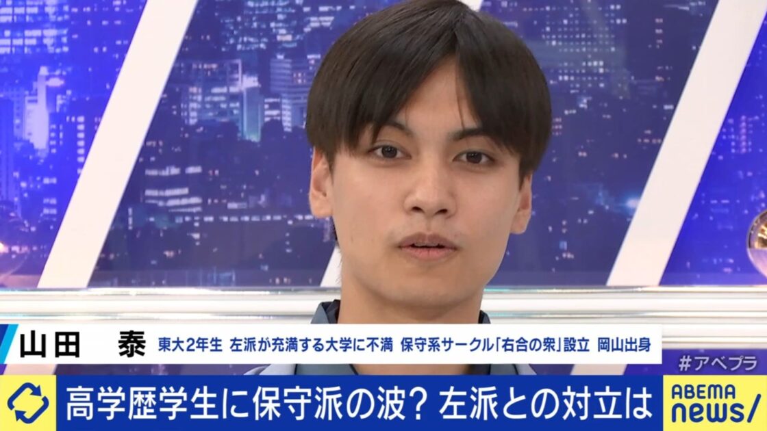 東京大学では今年5月、新たな保守系サークル「右合の衆」が誕生。また早稲田大学には設立から81年目を迎えた歴史ある「國策研究會」もある。「ABEMA Prime」では、この保守系サークルの代表者とともに国内の政治、政党について保守の立場から議論した。東京大学の山田泰さんは、今年5月に1人で保守系サークル「右合の衆」を新たに立ち上げた。「校内にはサークルの立て看板があるが、左派的な思想がメインストリームになっていて、その偏りを是正したいと思った」と、設立理由を語る。
