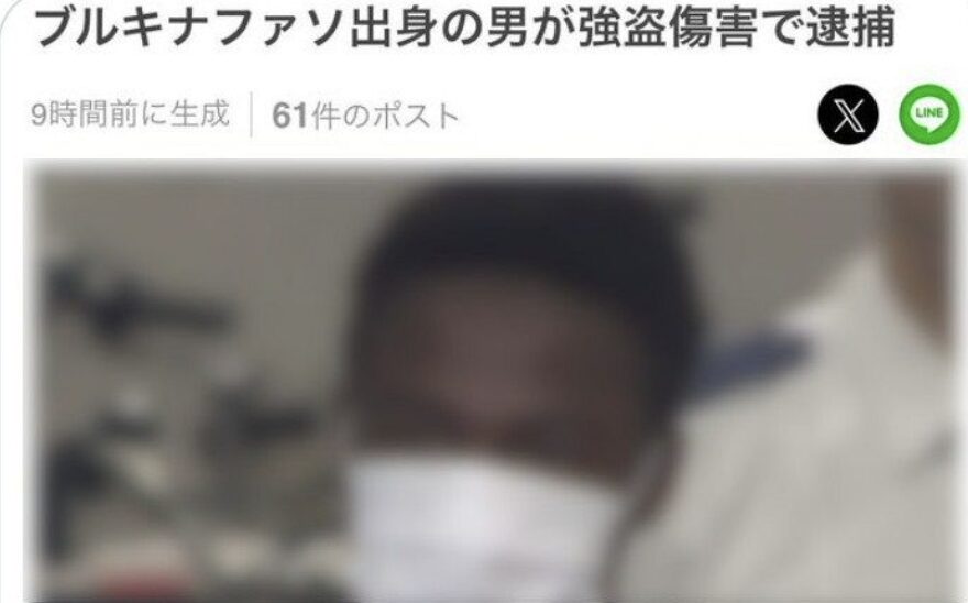 関連投稿には、警視庁福生署が昨年4月に逮捕したブルキナファソ出身の専門学生の男が強盗傷害の疑いで逮捕されたニュース映像があった。本紙が福生署に取材すると、逮捕容疑は「約6500円が入った財布を路上で男性(46)から奪い、それに気づいた男性の左手首などを刃物のようなもので切り付けた疑い」だった。被害男性は全治5日間のけがを負った。東京地検立川支部によると、男は強盗傷害の罪で同月に起訴されたが、公判は始まっていないという。