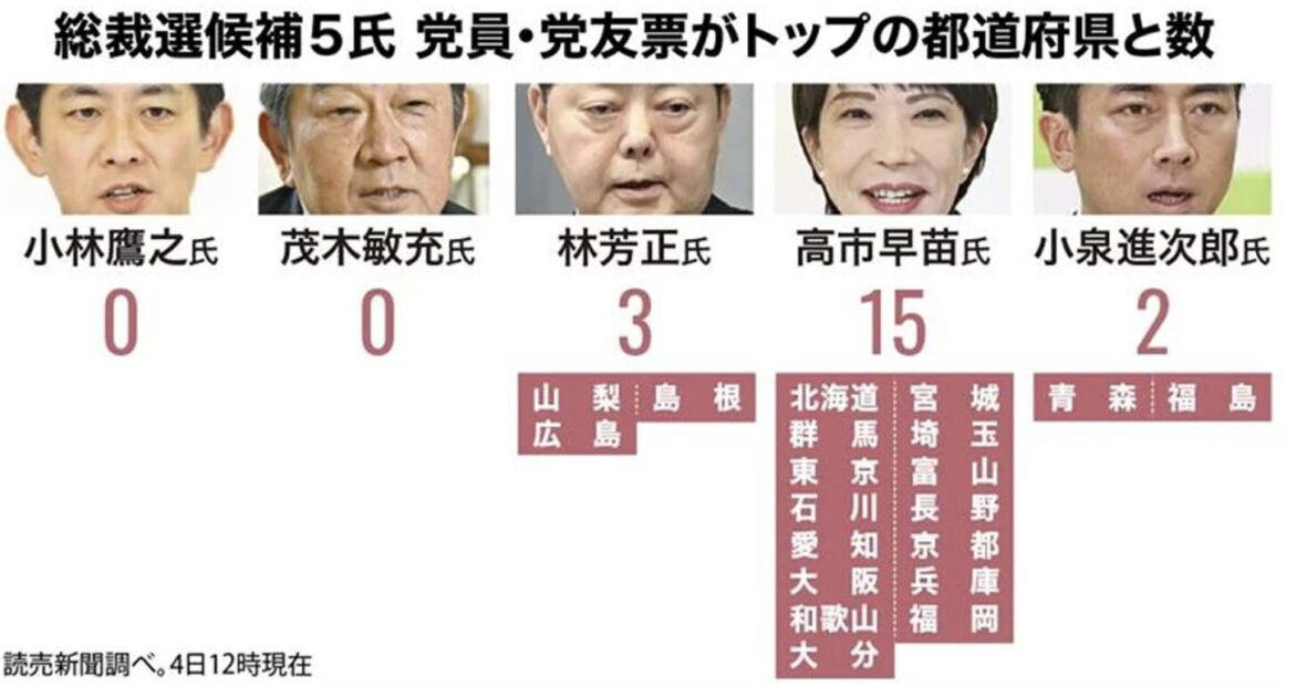 引用元: ・【自民総裁選】党員票の開票始まる…北海道・群馬・富山で高市早苗氏がトップに立つ [蚤の市★]