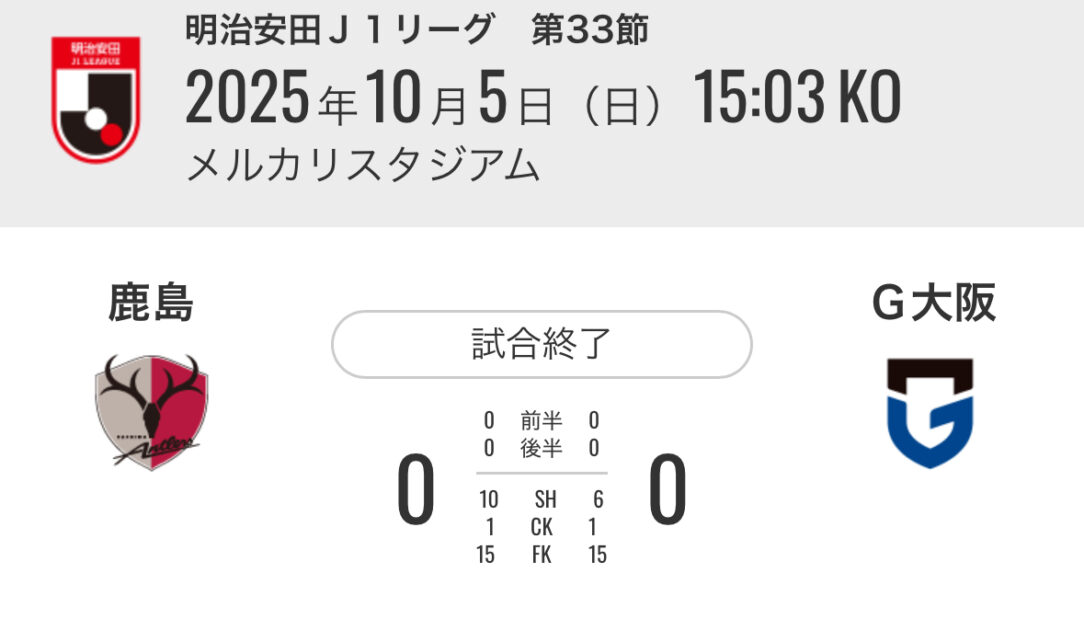 2025明治安田J1リーグ第33節が5日に行われ、鹿島アントラーズとガンバ大阪が対戦した。