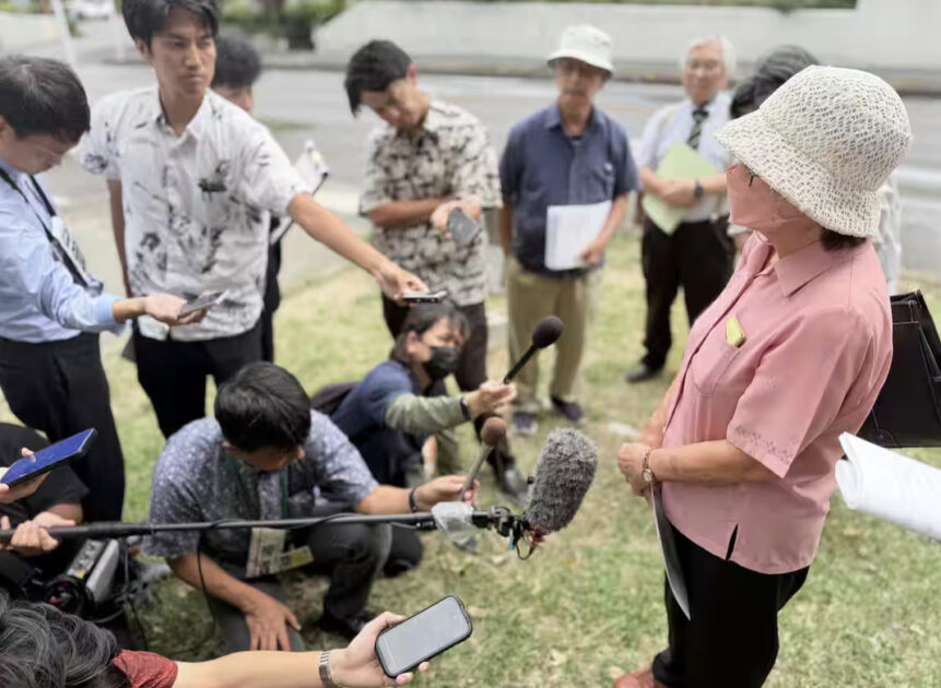地裁前で取材に応じた女性の姉は「事故は(防衛省)沖縄防衛局による安全性を無視し工事を急がせた危険なダンプ2台出しによって起こったもの。亡くなられた警備員さんやダンプの運転手さんも国策の犠牲者だ」とする女性のメッセージを紹介した。