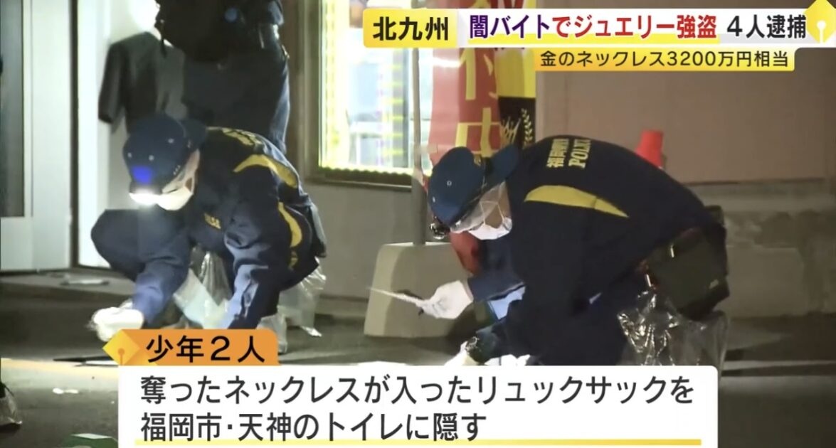 【福岡】金のネックレス3200万円相当を“強盗” 実行役の少年ら4人を逮捕 「遊ぶ金欲しさにやった」 SNS使った“闇バイト”か 北九州