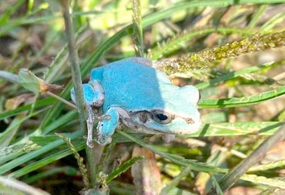 ガキの頃に見たことあるが珍しいカエルだったのか、本当に真っ青だったのが記憶にある