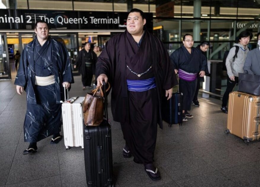 大相撲は10月11日、34年ぶりに開催される英国・ロンドン公演(15~19日)に向けて横綱・大の里、豊昇龍ら一行が東京・羽田空港を出発。ロンドンのヒースロー空港に到着した。その様子がSNSに拡散されると、見慣れぬ集団に海外から反響が広がっている。 日本相撲協会公式Xは「先に日本を出発したA班の力士達が、約14時間のフライトを終え、ヒースロー空港に到着しました」と報告し、最新映像を投稿。浴衣姿の力士たちはスーツケースを引きながら団体移動し、関脇の霧島はカメラに気付くと手を振りながら「ハロー」と早速英語を披露。リラックスした表情で笑顔を浮かべていた。