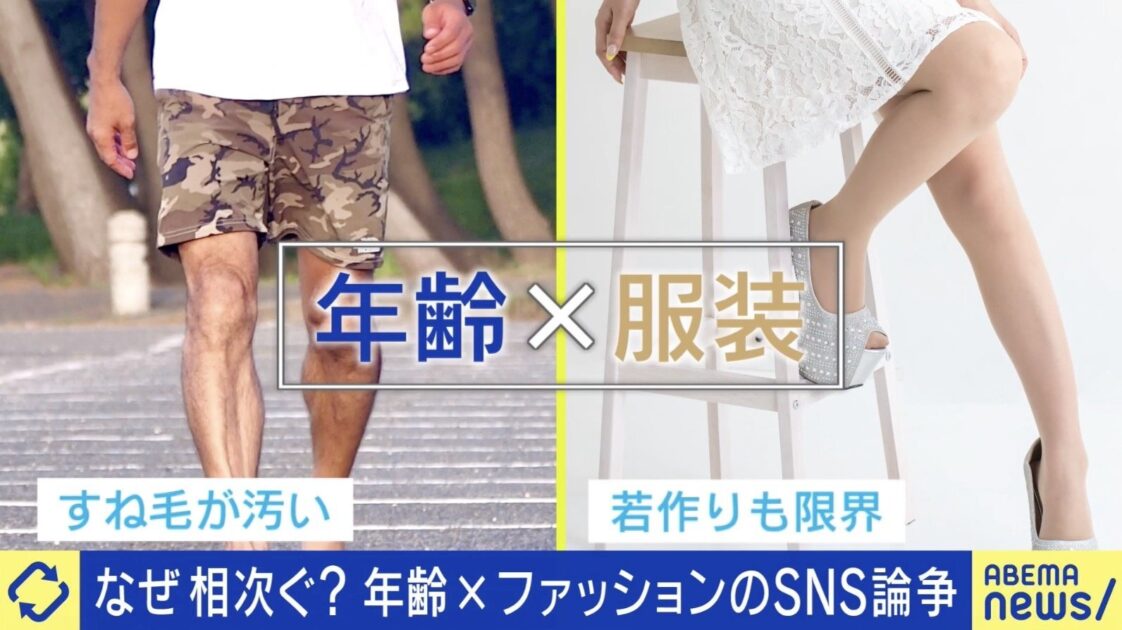 では、年齢関係なく好きな服を着ることは許されないのだろうか。20代の若者に話を聞くと、年上世代のファッションに対して、「スウェット短パンおじさん」「ノースリーブおばさん」「胸元出しすぎおじさん」「ハイブランドおじさん」など厳しい意見が相次いだ。日本に蔓延る人のファッションに文句を言いたがる風潮。年齢関係なく好きなファッションを楽しんではダメなのか。その是非を『ABEMA Prime』で考えた。