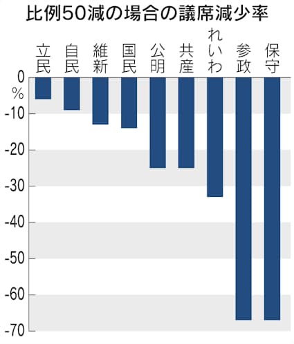 維新要求の議員定数削減、衆院比例50減なら参政や保守は1議席に