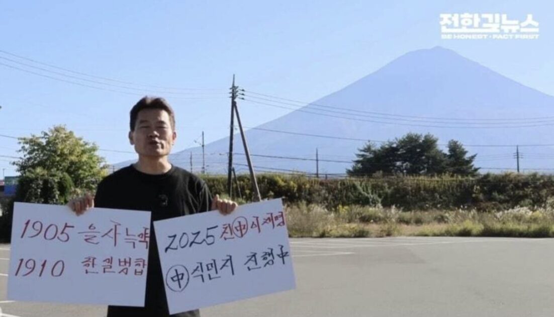 韓国史講師出身のユーチューバー、チ〇ン・ハンギル氏が日本で単独デモを行い、「李在明(イ・ジェミョン)政権が親中化しつつある」と主張した。チ〇ン氏は17日、「1905年乙巳勒約(第二次日韓協約)」と「1910年韓日併合」と書かれたプラカード、そして「2025年親中・李在明」と書かれたプラカードを持ち、富士山を背景に立つ姿を撮影した動画を自身のYouTube(ユーチューブ)チャンネルに投稿した。