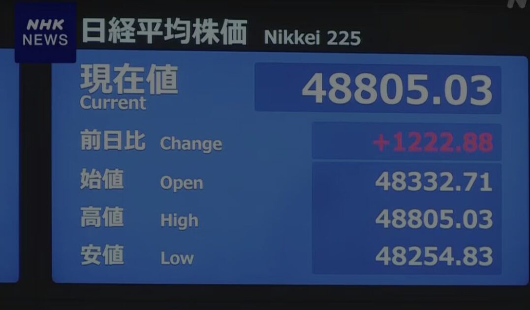 【日経平均】株価 1200円以上値上がり 取り引き時間中の最高値更新