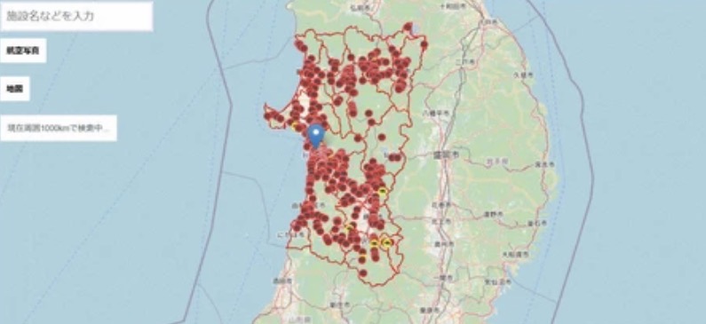 クマの出没情報を地図に表示するシステム「クマダス」の画面