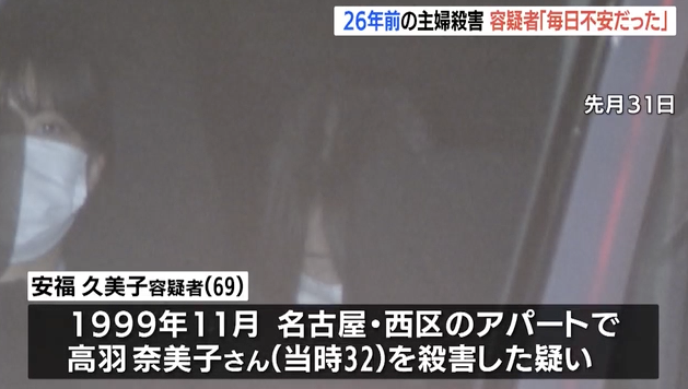 名古屋市港区のアルバイト、安福久美子容疑者69歳は1999年11月、西区のアパートで主婦の高羽奈美子さん当時32歳の首などを刃物で刺して殺害した疑いがもたれています。