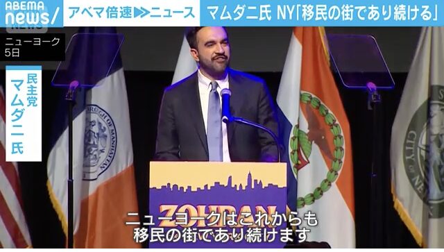 アメリカ・ニューヨーク市長選挙でインド系移民のゾーラン・マムダニ氏が当選し、勝利演説をしました。
