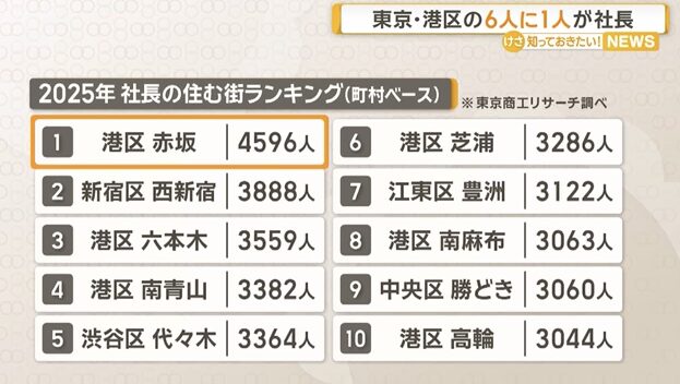 東京・港区民の6人に1人が社長 最多は赤坂、13年連続トップ 東京商工リサーチ