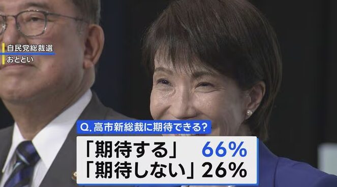 10月調査で「高市総裁に期待する」世代は、若者世代ほど高く、30代では82%に達していた。