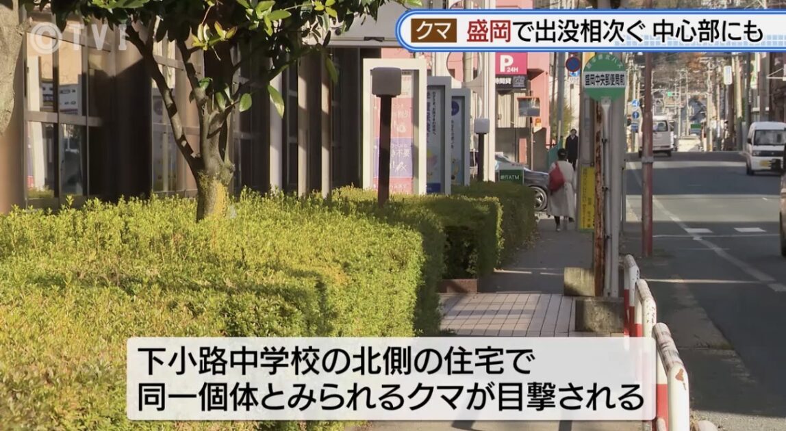 今野記者「クマはけさ、盛岡市の繁華街にほど近いこちらの盛岡中央郵便局のそばで複数回目撃されました」