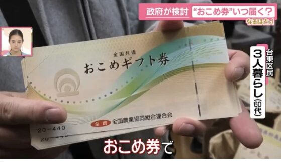 「(その1つが)東京・台東区です。区内の高坂米店では『おこめ券取扱店』というシールが貼られています。お客さんがお米をおこめ券で購入する姿が見られました。1枚440円で、ある人は7枚使って買っていました」