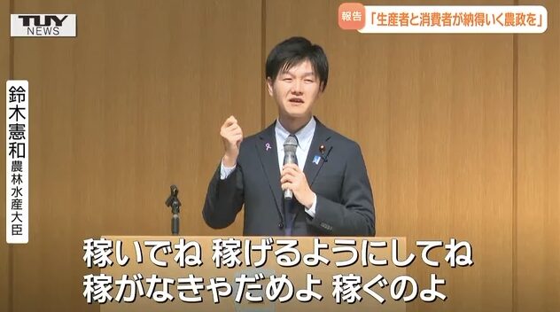 引用元: ・「稼ぐのよ!」高市総理が電話ガチャ切りで伝えたこと 鈴木憲和農林水産大臣が国政報告会に出席 自身が目指す農政の方針語る [煮卵★]