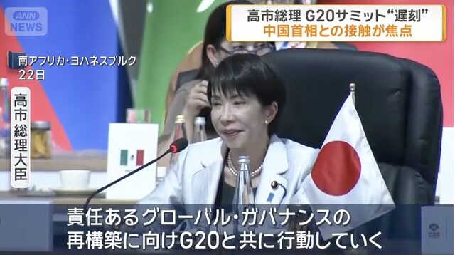 高市早苗総理 G20サミット“遅刻” 会議後の夕食会出席も見送り