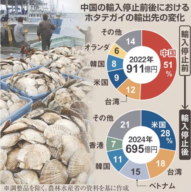 中国は主要な輸出先だったが、2023年の東京電力福島第1原発の処理水放出開始以降、中国側の輸入停止が続いたことで、日本側は