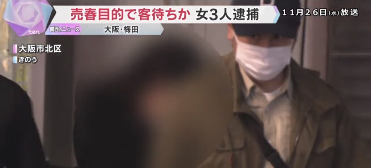 大阪・梅田の路上で、売春する目的で客待ちをしたとして、20代~30代の女3人が逮捕されました。