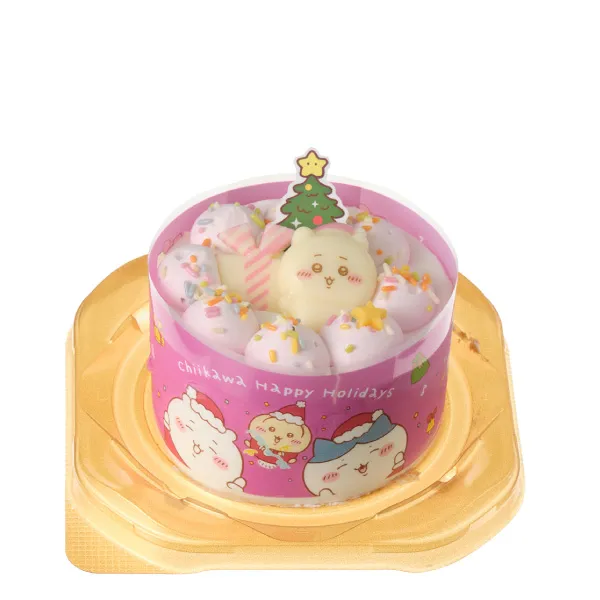 販売するのは「ちいかわ ハッピーツリーケーキ」(1620円)。ラッピングフィルムにはちいかわ、ハチワレ、うさぎが描かれ、ケーキの真ん中にはちいかわとクリスマスツリーが乗っています。