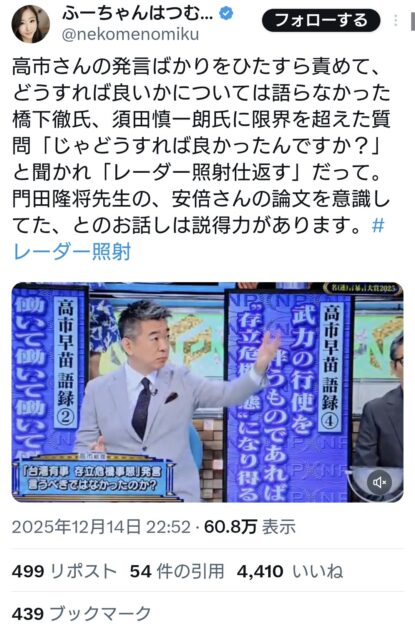 引用元: ・橋下徹氏、「じゃどうすれば良かったんですか?」と聞かれ「レーダー照射仕返す」と答える [662593167]