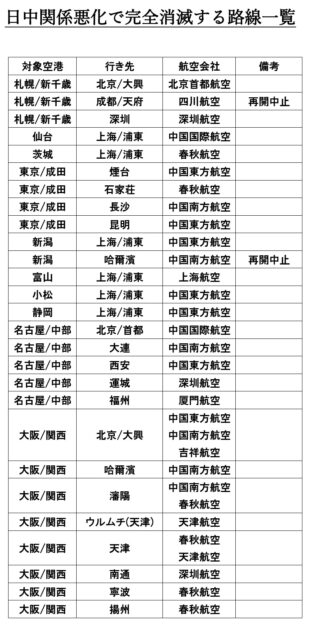 引用元: ・【悲報】日中関係悪化で運休となった路線一覧がこちら……なぜか羽田・福岡発着はゼロ [917589786]