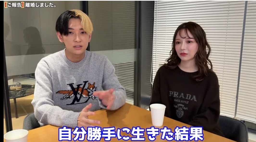 2人が並んだ動画の冒頭、ヒカルは「ちょっと皆さんに、僕たち2人から報告があります。ずっと報告をしてばっかりなんですけど、これが最後になるので聞いてください。まず結論から言いますと、離婚しました」と報告。